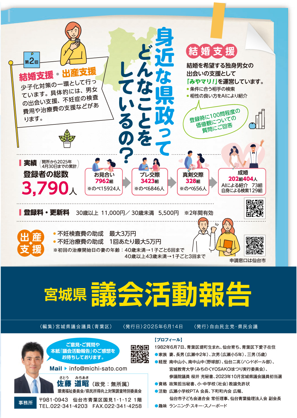 こちらでは、県議会での活動や地域の課題に対する取り組みをまとめた「議会報告書」と「議会質問動画」を掲載しております。皆さまの声を県政に届け、より良い地域づくりを進めていくための一助として、ぜひご覧ください。